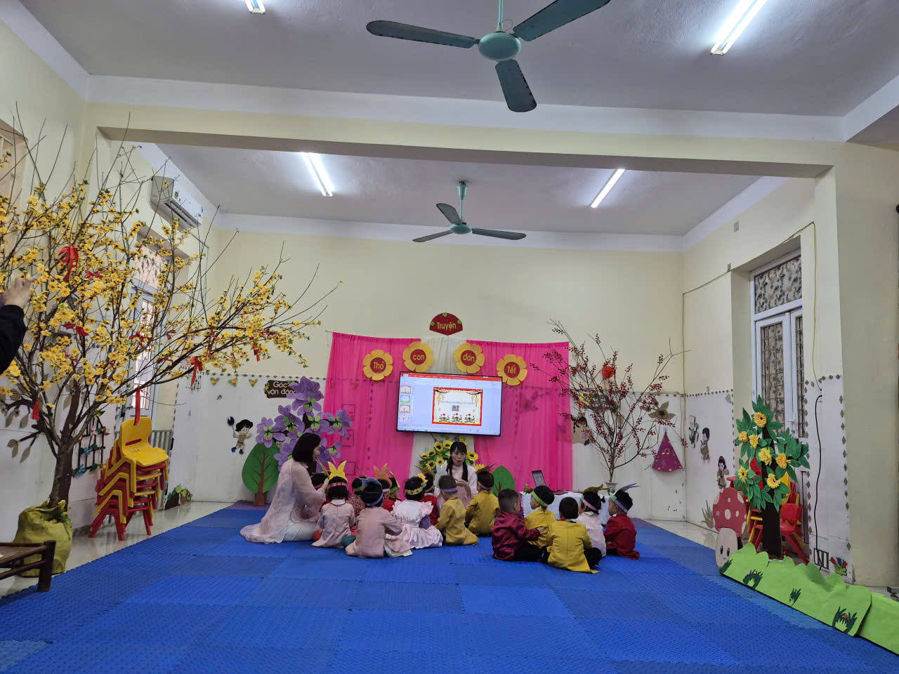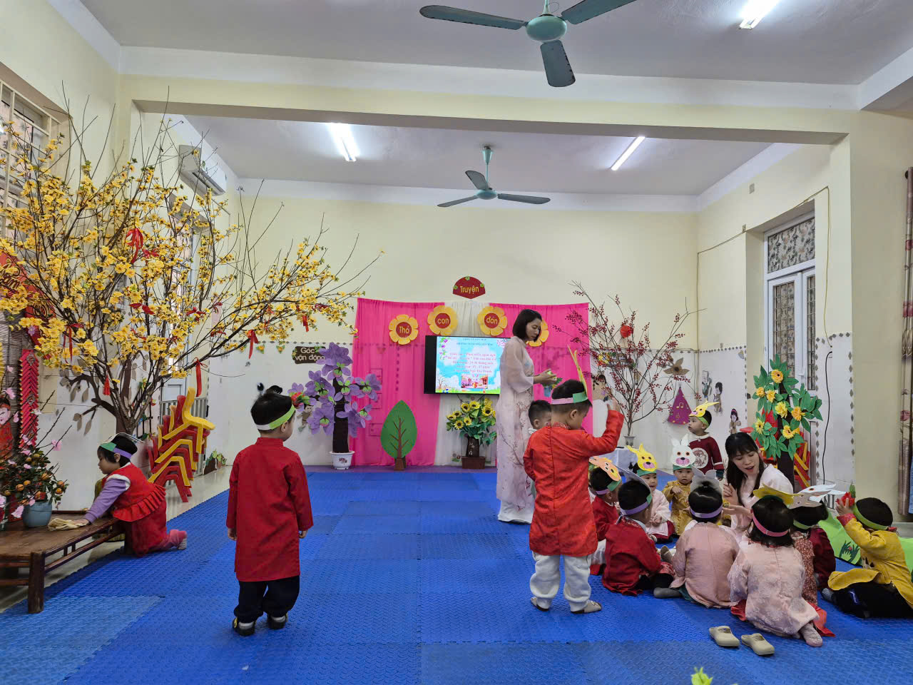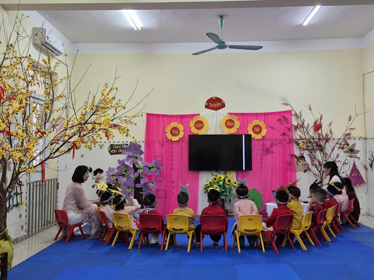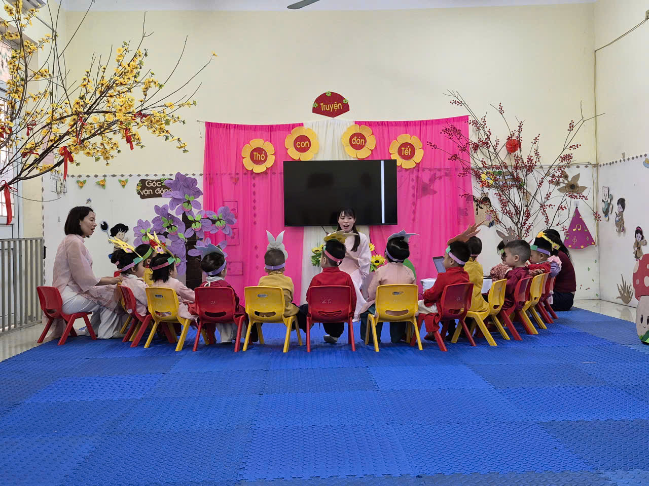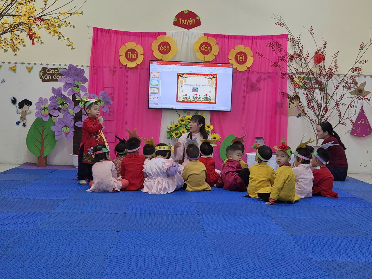 Tiếp tục là những hình ảnh, video phong trào hội học, hội giảng đợt 2 với đề tài: Kể truyện “Thỏ con đón tết” của cô và cháu lớp 2 tuổi B, trường mầm non Yên Mạc